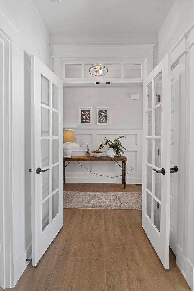 Enter the open Foyer and you’ll find two gracious Bedrooms with large closets and shared full Bath. A beautiful open concept Dining Room adjoins the Kitchen and Great Room.