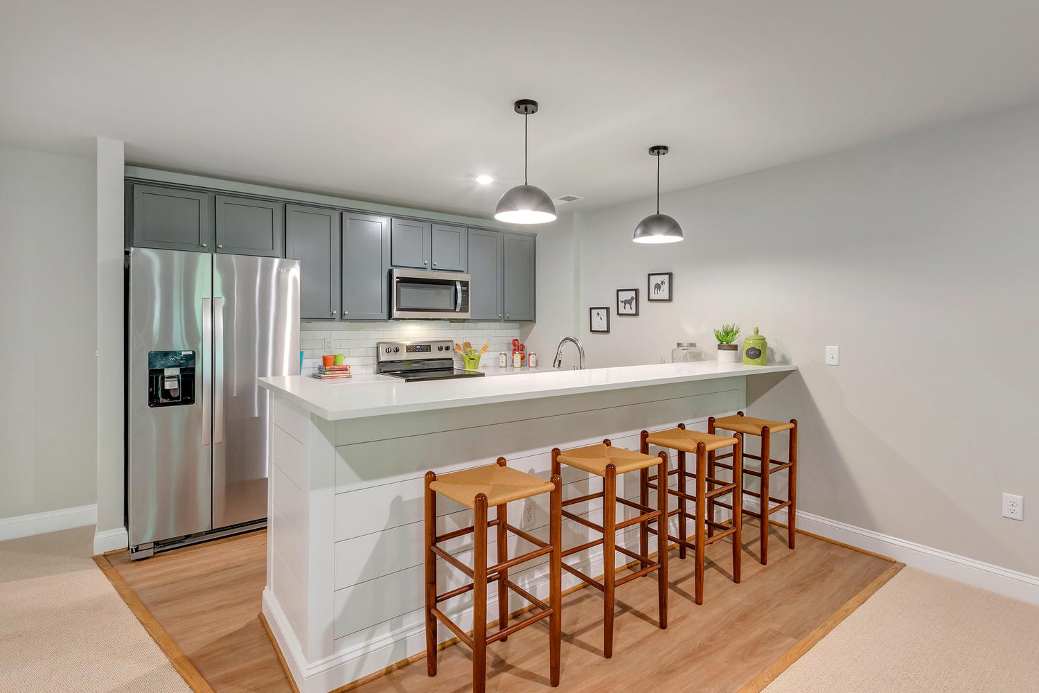 • Choice of full overlay painted cabinetry with dovetail construction and soft close doors