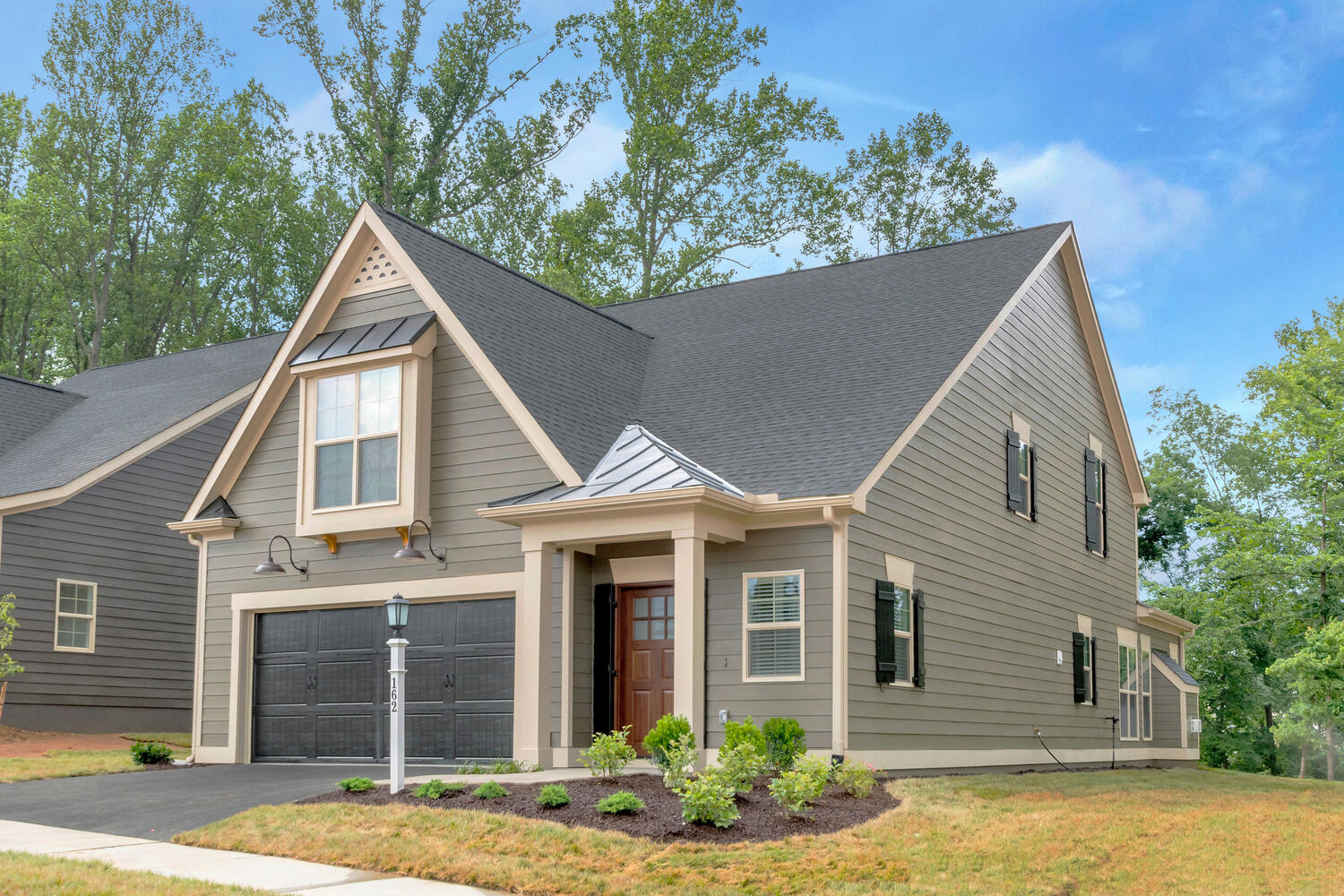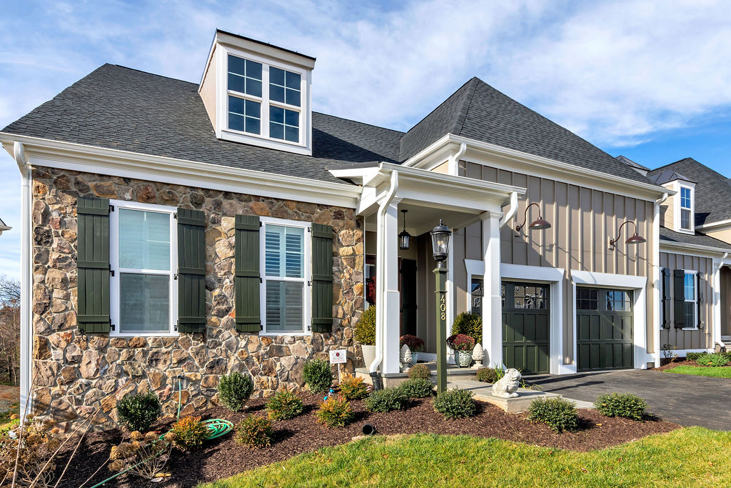 Exterior of Craig Builders model home in Old Trail Village in the evening.
