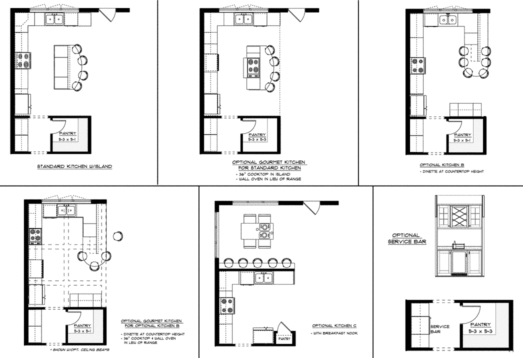 The Kitchen features five different layouts designed to meet your individual needs and lifestyle. Choose a layout that includes seating for six with a Peninsula, an Island or a Breakfast Bar/Nook. The walk-in Pantry reduces clutter and provides extra storage.