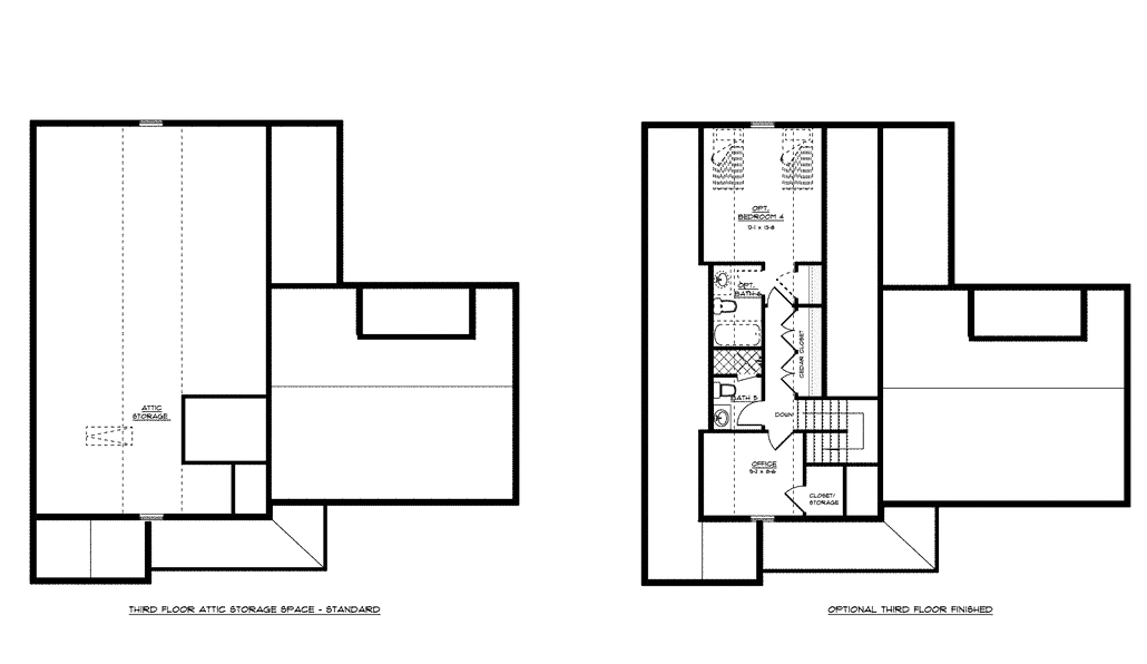 The Bayshire also features a loft level that can be used as attic storage, a conditioned Bonus Room, Office, or a fourth or fifth Bedroom Suite. If you choose a Basement home site, the Basement boasts storage space, a Wet Bar, Guest Room with Bath, and a Recreation Room. This area can also serve as the perfect in-law suite.
