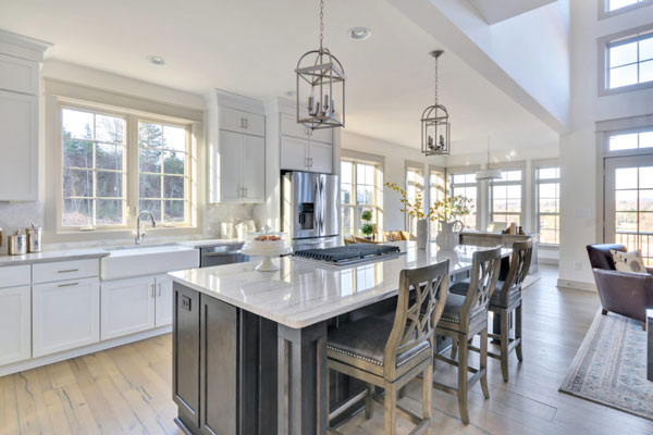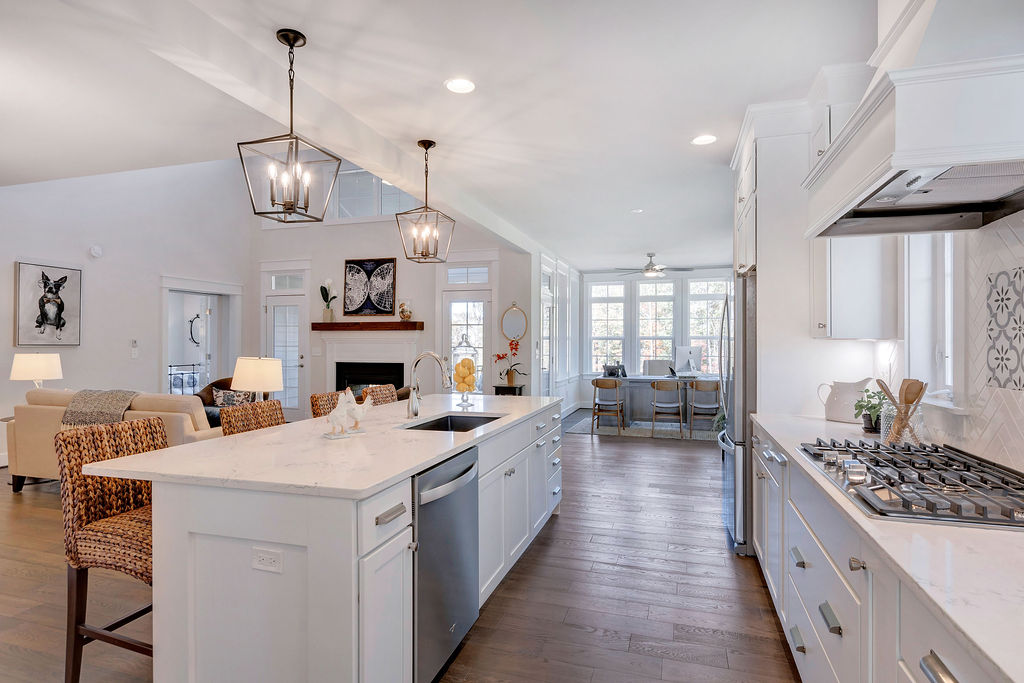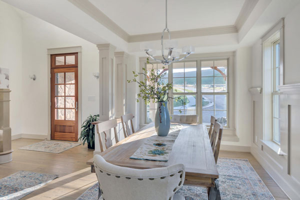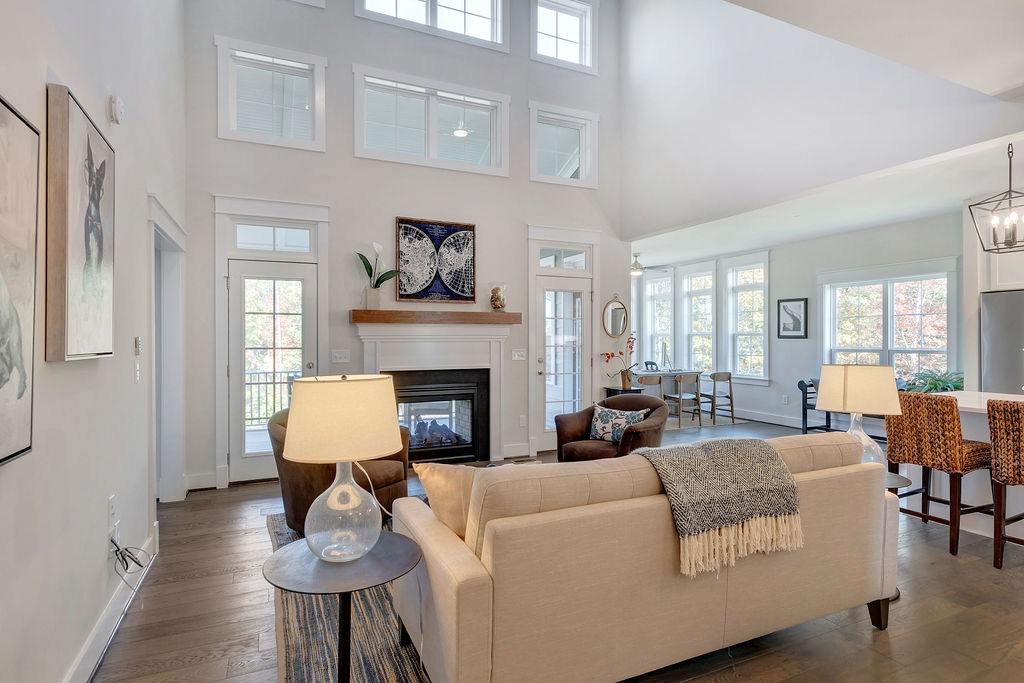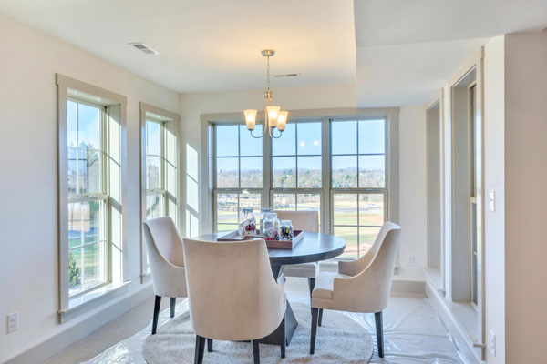 The Fairway offers an open floor plan with a two-story Great Room that boasts an entire wall of windows that bring the outside in, with abundant natural light and sweeping views of the beautiful surroundings. The Fairway’s flexible floor plan is designed to fit any lifestyle, with a first floor Owner’s Suite and Laundry, and an additional two Guest Bedrooms, two full Baths and an optional finished Bonus Room upstairs. The Foyer opens to an elegant Dining Room on one side, while the main hallway accesses a Powder Room and Living Room. The Great Room features vaulted ceilings and leads to an outdoor deck and a Breakfast Dining area, which connects the Kitchen to the optional Sunroom.