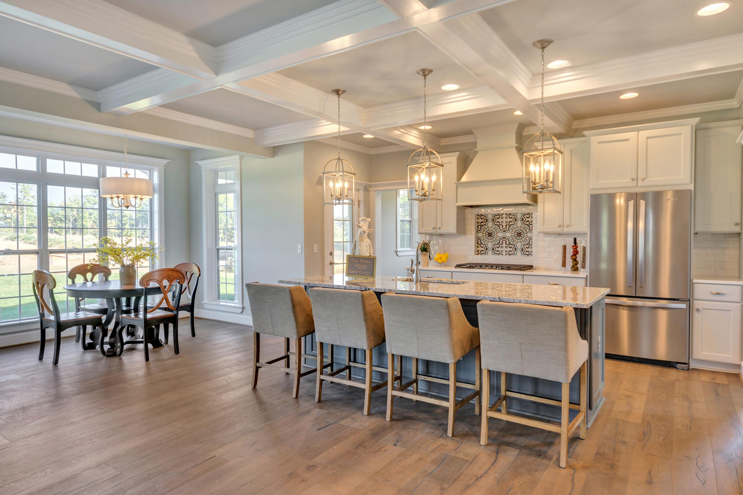 The gourmet Kitchen and Breakfast Nook are centrally located and flow into the signature Great Room, which opens to a Patio or Deck. In the Great Room, choose a fireplace with flanking built-in bookcases to warm your living and entertaining space.