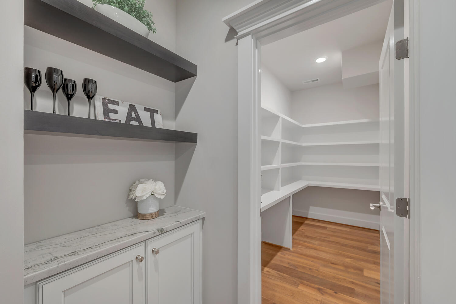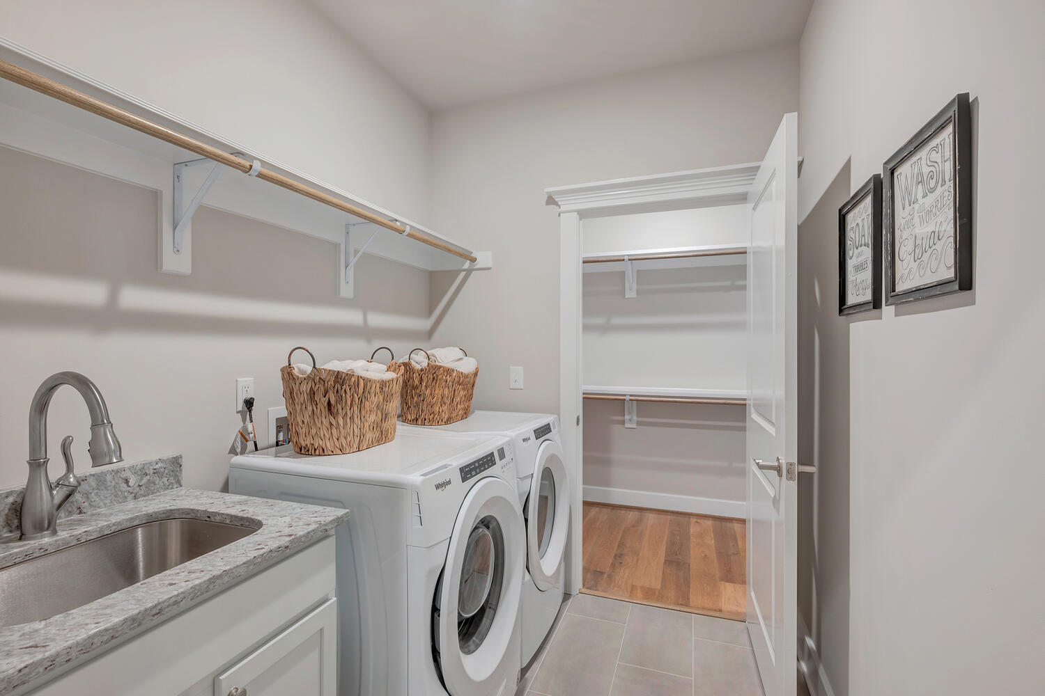 The first floor Owner’s Suite is tucked away from the living area and features a beautiful trey ceiling, large walk-in closet and spacious Owner’s Bath. The Bath has a standing shower, double vanities and a private water closet. Homeowners will love the convenient connectivity from the walk-in closet to the laundry room.