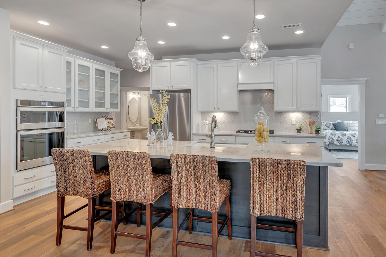 Enter the open Foyer and you’ll find two gracious Bedrooms with large closets and Jack and Jill bath. A beautiful open concept Dining Room adjoins the Kitchen and Great Room allowing for abundant natural light.